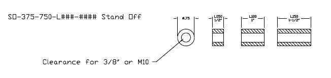 | Stand Off, 1-1/2" Long, Aluminum (Set of 4) Part #: SO-375-750-L150-S316 |
