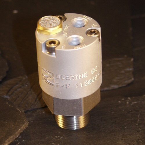 The Doering PAV Series valve provides an interface between Hydraulic or High Pressure (up to 5000 PSI) pilot signal and low pressure 0-150 PSI pneumatic directional control. The PAV Series valves are available with crack pressure ranging from 50 PSI to 2,000 PSI. Call for specific crack and re-seat pressures available. Doering Compny encourages you to call with any application questions. Please see our contact us page.