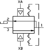 function. The normally closed valve provides the pressure reducing function and the normally open valve provides the pressure